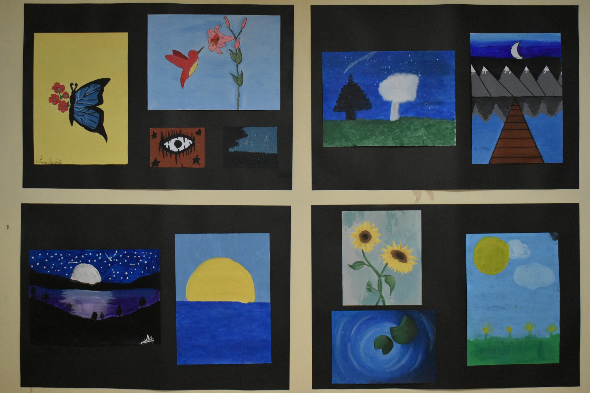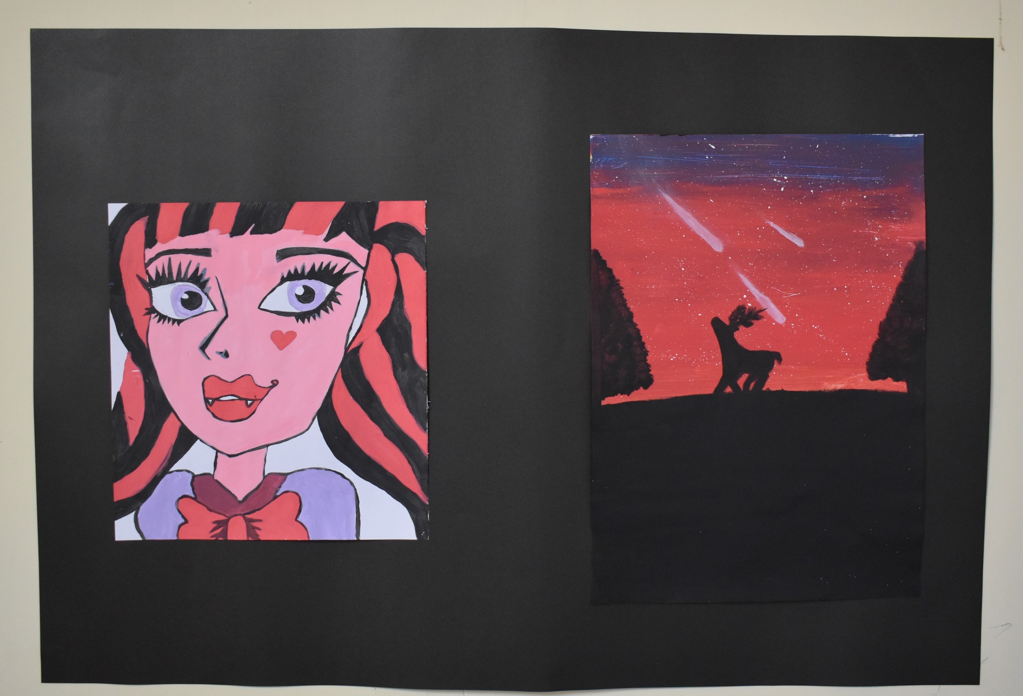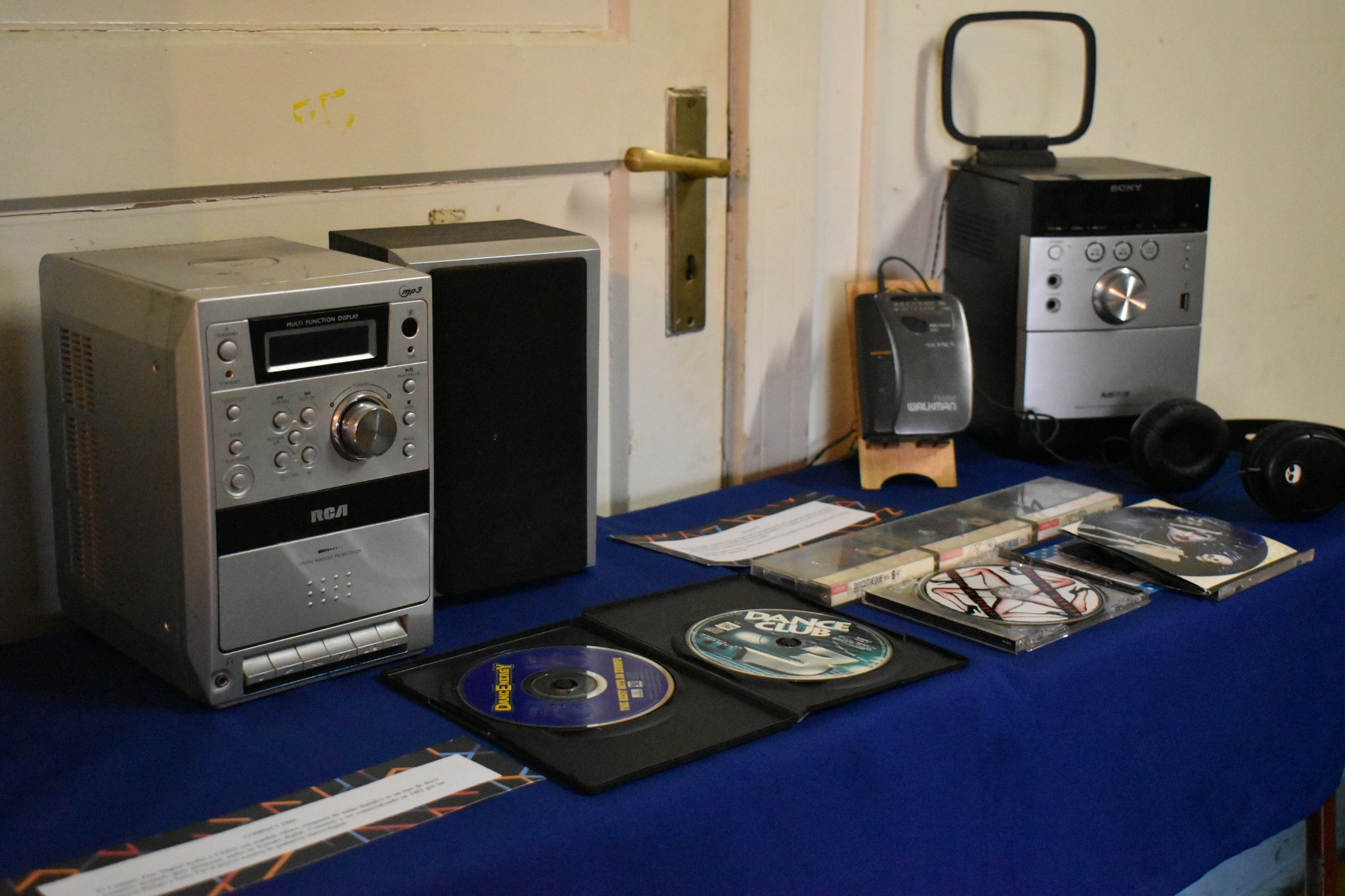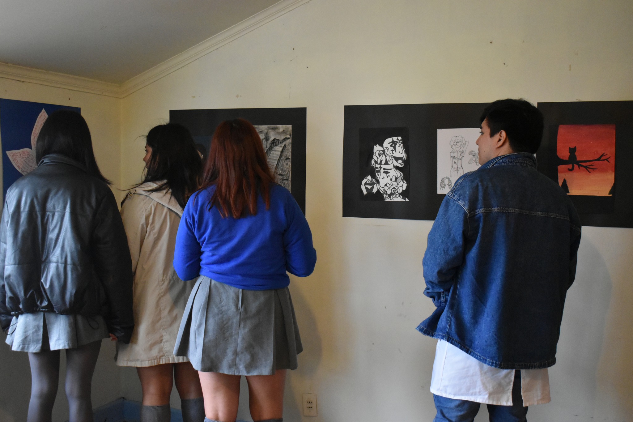 La galería artística se compone de obras realizadas por nuestros estudiantes de 1°básico a 4°medio con diferentes tópicos, técnicas y medios expresivos, mientras la música de un viejo tocadiscos de vinilo retrata cómo era la música antes de la era digital.